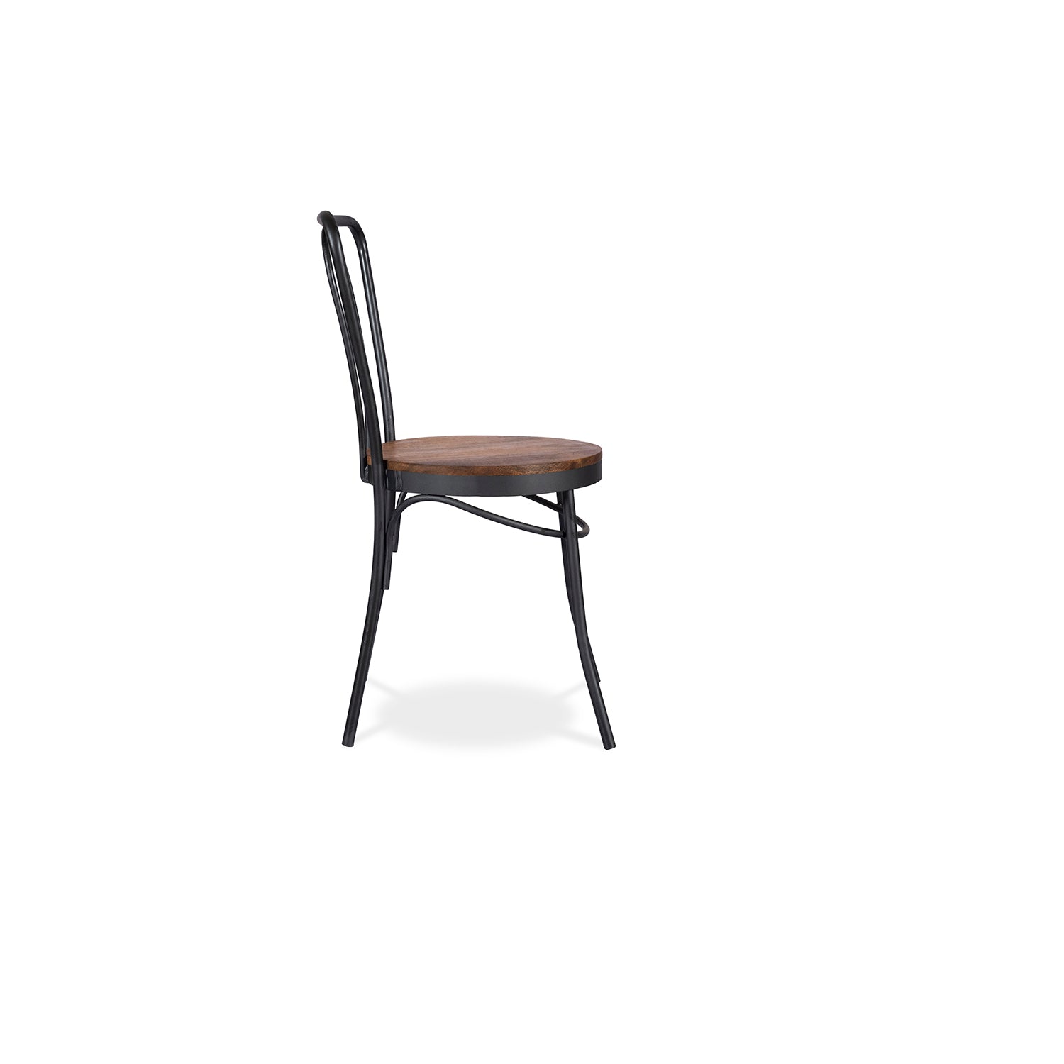 This industrial style chair is simple and robust and will effortlessly match any dining table style in a home or a cafe. The versatile dark tone is finished by the solid wood earthly hue that brings in a rustic aesthetic wherever you place it. The subtly curved back and the delicate bent legs are constructed using high-grade metal and the wide seat is crafted with mango wood. The attractive design makes it an ideal option to be paired with an entryway table or writing desk. This FRENCH CAFÉ CHAIR can also add charm to your breakfast nook and will make a lasting addition to your home.